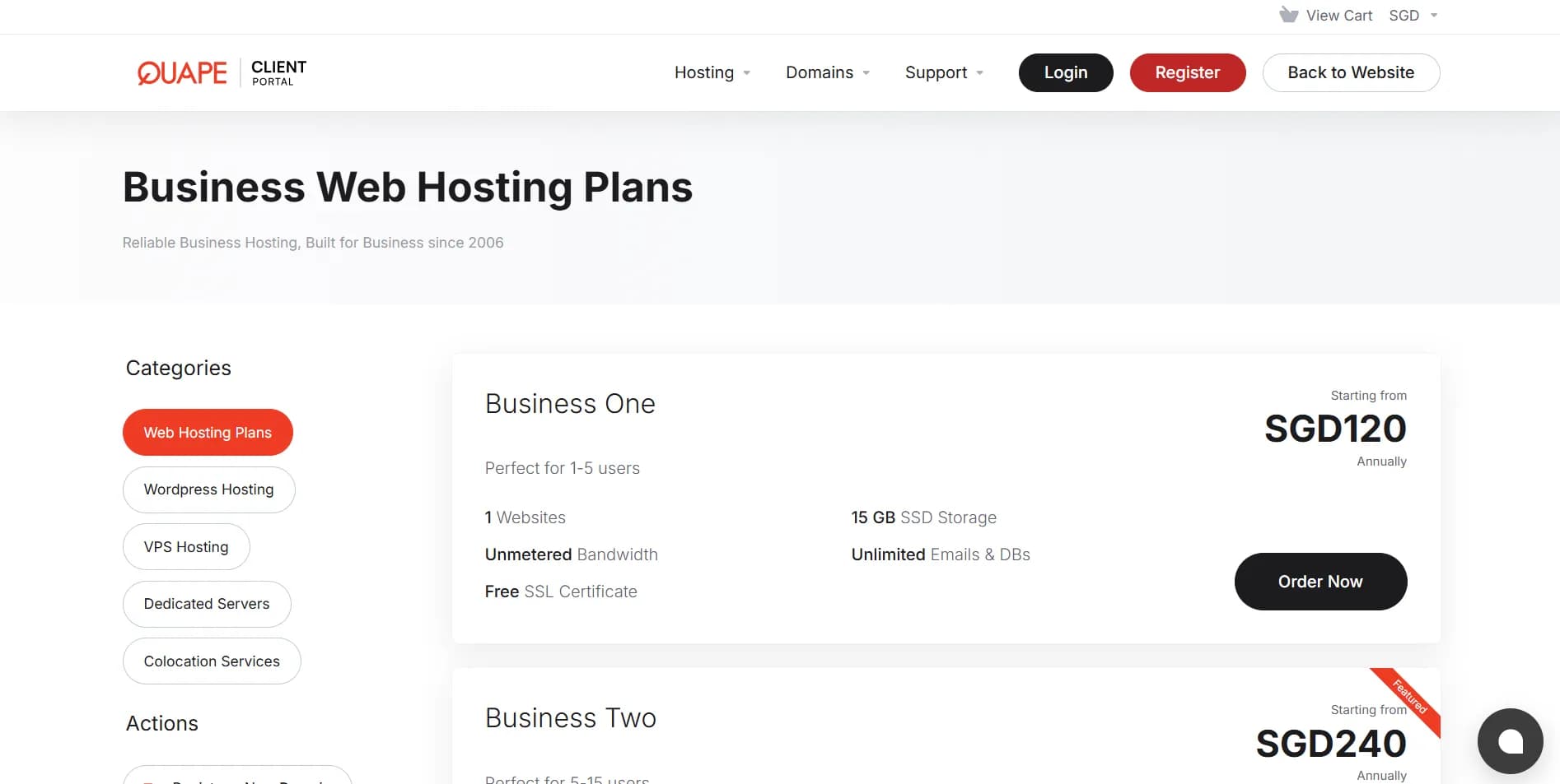 Quape adalah penyedia layanan web design dan hosting terpercaya yang berlokasi di Singapore. Didirikan pada tahun 2006, Quape telah menjadi pioneer dalam industri web design dan hosting di Singapore dengan mengelola infrastruktur sendiri untuk memberikan solusi yang seamless dan terintegrasi bagi klien. Dengan tim lebih dari 10 experienced full-stack developers, Quape bangga mempertahankan kehadiran yang kuat di Singapore dan Vietnam. Mereka menawarkan berbagai layanan hosting dari shared hostin...